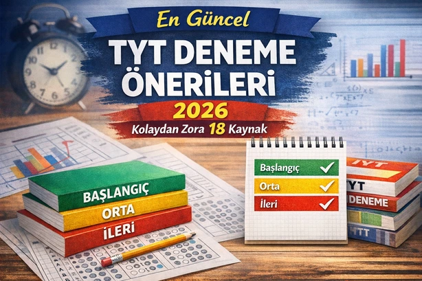 Bu yazıda 18 TYT deneme kaynağını TYT genel deneme önerileri, branş denemeleri, matematik kaynakları ve konu denemeleri olarak dört kategoride kolay, orta ve ileri seviye ayrımıyla inceledik. Liste hazırlanırken 2025–2026 sezonunda erişilebilen seri, çözüm erişim altyapısı ve güncel baskı görünürlüğü dikkate alınmıştır. En iyi TYT denemeleri kişiden kişiye değişir; hedefin ne olursa olsun bu listede net aralığına uygun bir başlangıç noktası bulacaksın.