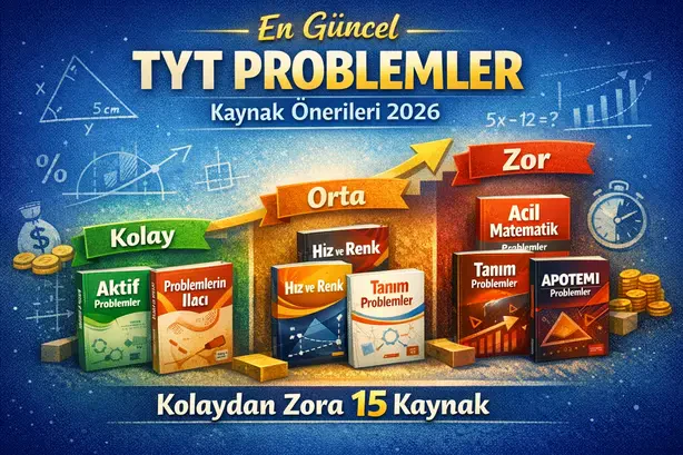 Bu yazıda 2026 TYT problemler kaynak önerilerini kolay, orta ve ileri olmak üzere üç seviyede inceledik; 15 soru bankasını kolaydan zora sıraladık. Liste hazırlanırken 2025–2026 sezonunda erişilebilen seri, çözüm erişim altyapısı ve güncel baskı görünürlüğü dikkate alınmıştır.