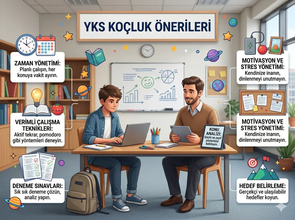 YKS koçluk önerileri listemizin başında, süreci kaostan kurtarıp bir düzene oturtmak gelir. İyi bir koçluk yaklaşımı; zaman yönetimi, kaynak seçimi, konu önceliği ve stres kontrolü gibi hayati parametreleri optimize eder.