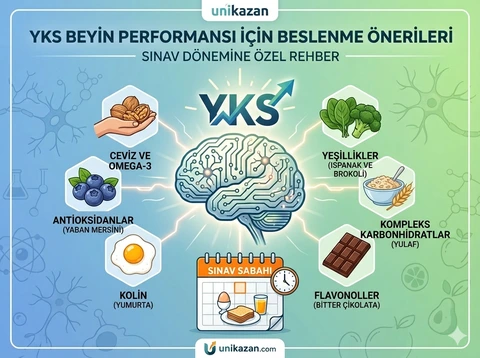 Önemli not: Beslenme, sınav başarısının önemli bir parçasıdır ama tek belirleyici değildir. Düzenli çalışma, yeterli uyku ve stres yönetimiyle birlikte etki gösterir.