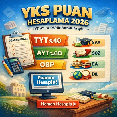 YKS puan hesaplama, doğru tercih yapmanın ilk adımıdır. TYT ve AYT netlerinizin puanınıza ne kadar yansıdığını, OBP'nin etkisini ve puan türleri arasındaki farkları anlamak; hem çalışma stratejinizi hem de tercih listenizi şekillendirir.